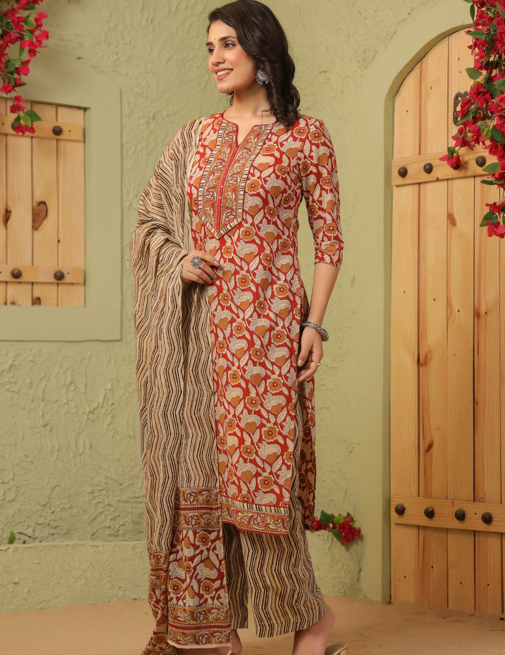 Classic Cotton Kurta Palazzo Set with Dupatta | Comfortable & Stylish
